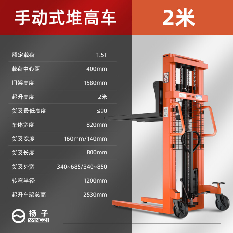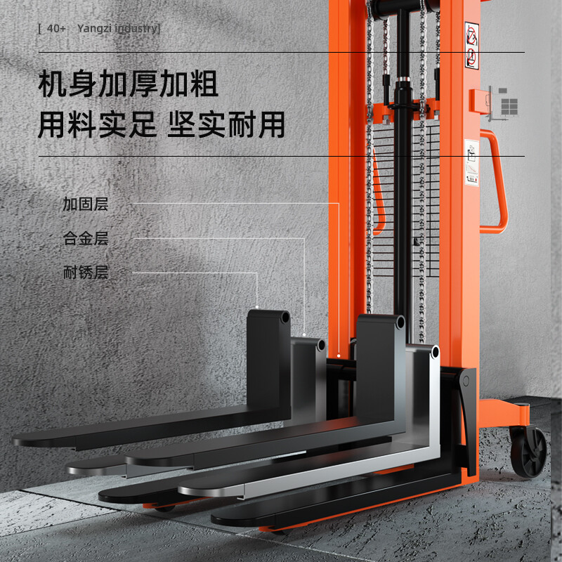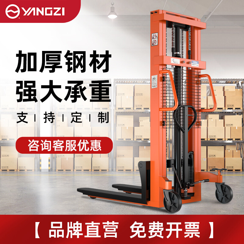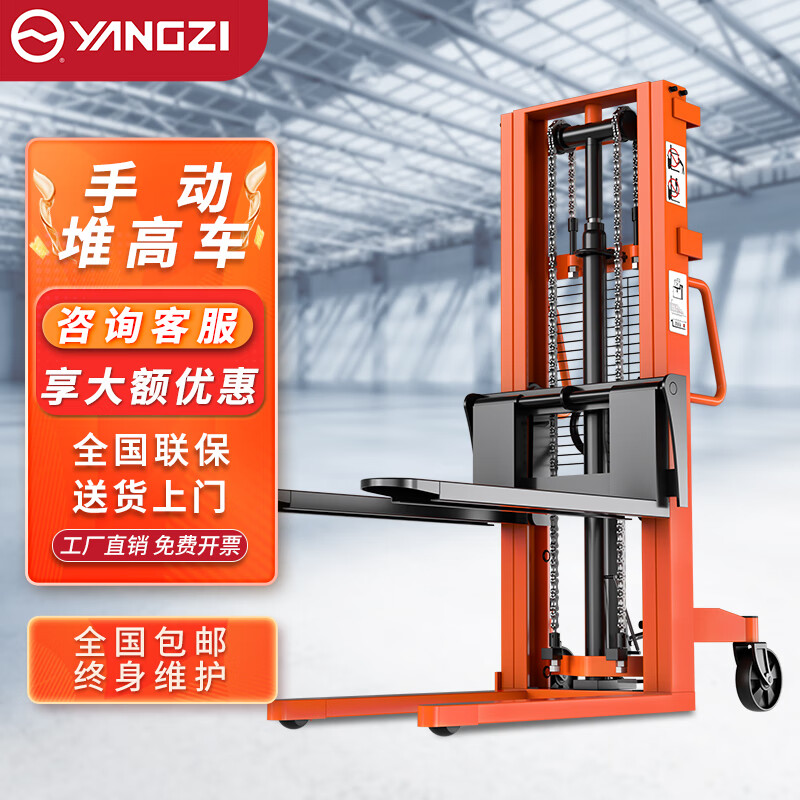 揚子手動液壓堆高車SDD:揚子手動液壓堆高車經濟實惠,新手不加價,配置好不講究,手動液壓堆高方便省力省時。