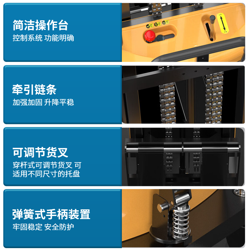 揚子堆高車YZ-B系列是半自動的堆垛機,對于預(yù)算有限,想要達到一定效率的客戶來說是最好的選擇,而且這款半自動電動堆高車采用加厚貨叉,密封油缸,產(chǎn)品質(zhì)量經(jīng)過多方檢測,更加耐用。
