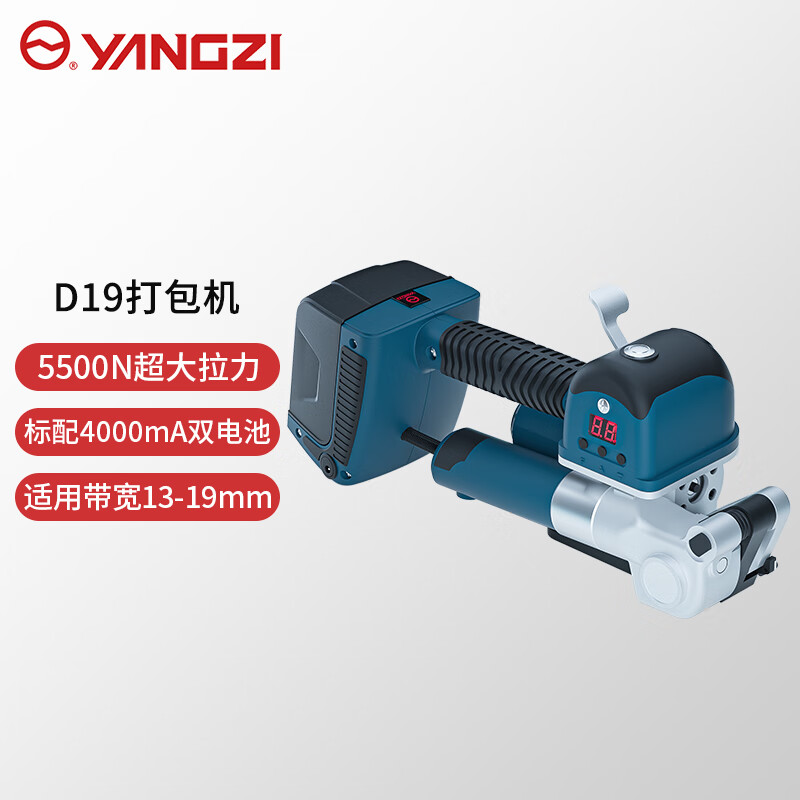 手持電動打包機D19,5500N強勁拉力,銅芯電機低音轉軸,400MA*2雙電池超長續航,充電僅需90分鐘