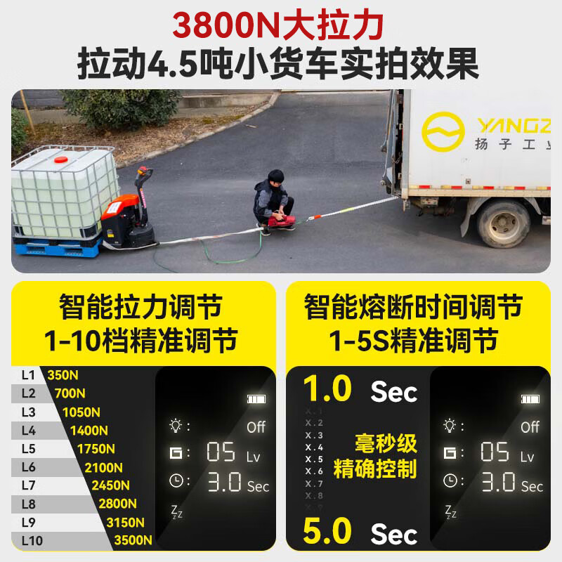 3500N強(qiáng)勁大拉力,4000MA特斯拉同款鋰電池,金屬防滑齒輪,咬合力強(qiáng)不打滑。